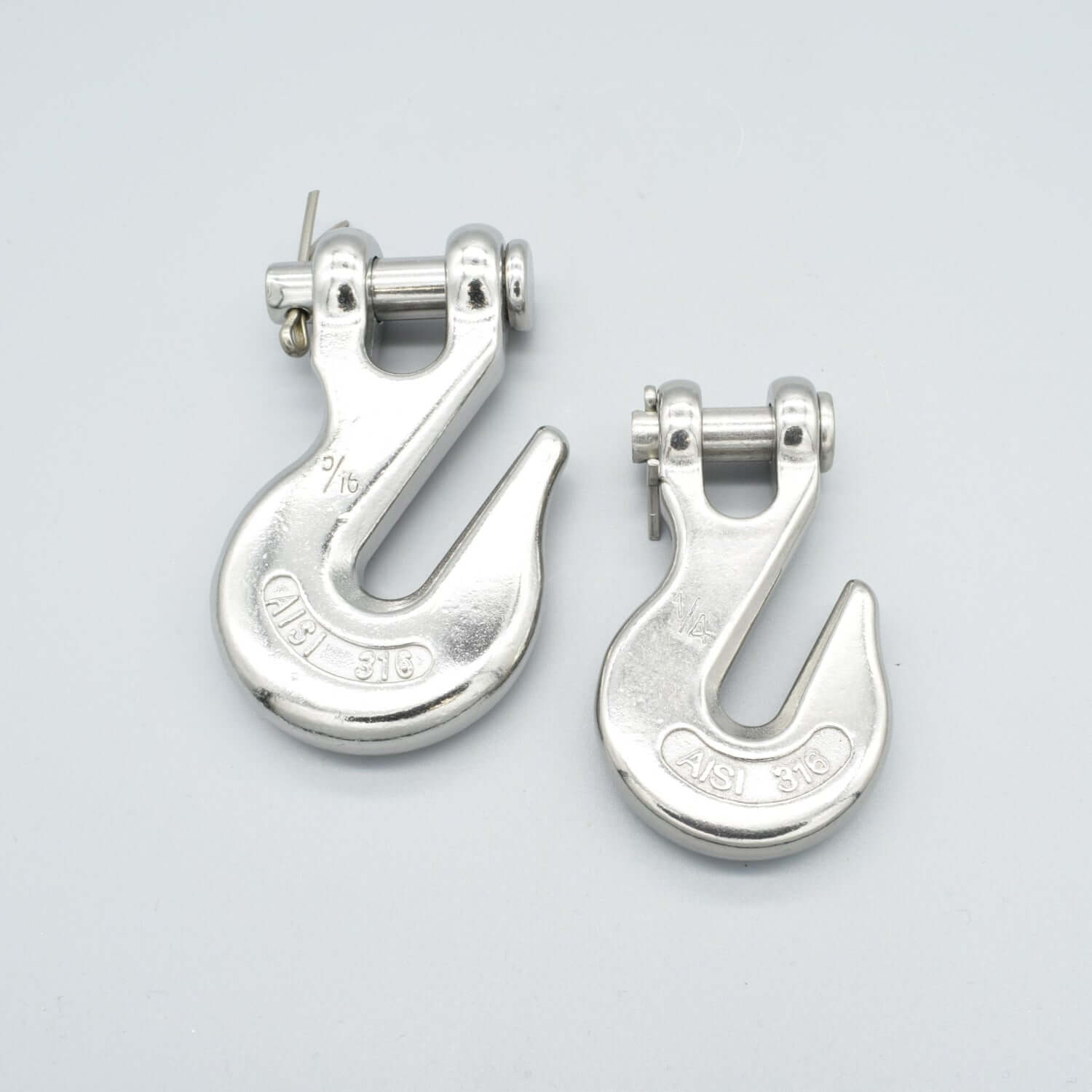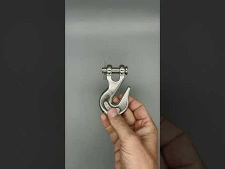 Den integrerade gaffelkopplingen (clevis) med sprint gör det enkelt att montera kroken direkt på kättingen utan extra beslag. Konstruktionen är optimerad för att greppa kättinglänkar och förhindrar glidning, vilket gör den idealisk för säker förkortning, fixering eller förankring.