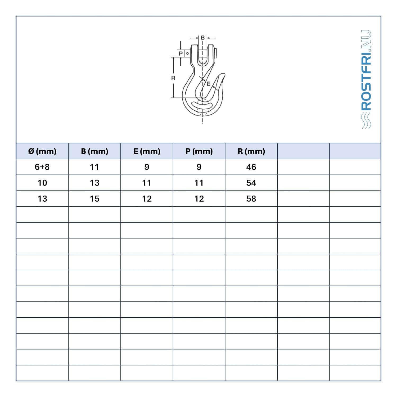 Behöver du en pålitlig krok för att fästa, förkorta eller säkra kätting i krävande miljöer? Kedjekrok A4 (även kallad kättingklo, grab hook eller chain claw) i syrafast rostfritt stål AISI 316 är utvecklad för att tåla tuffa marina, industriella och kemiskt påfrestande miljöer. Tack vare den höga korrosionsbeständigheten fungerar kroken utmärkt i saltvatten, utomhusapplikationer och miljöer där slitstyrka och lång livslängd är avgörande.