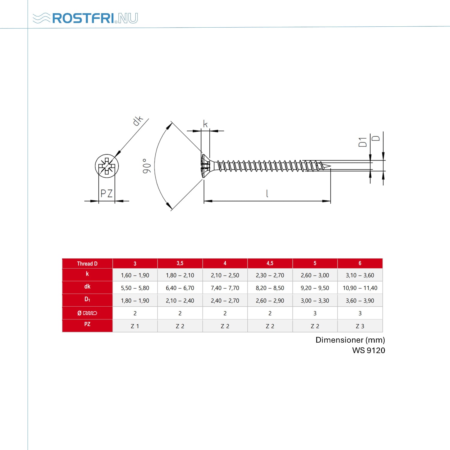 Funksjon: Krysstreskrue (SKRUE VVS) med panhode og med pozidrive krysspor.